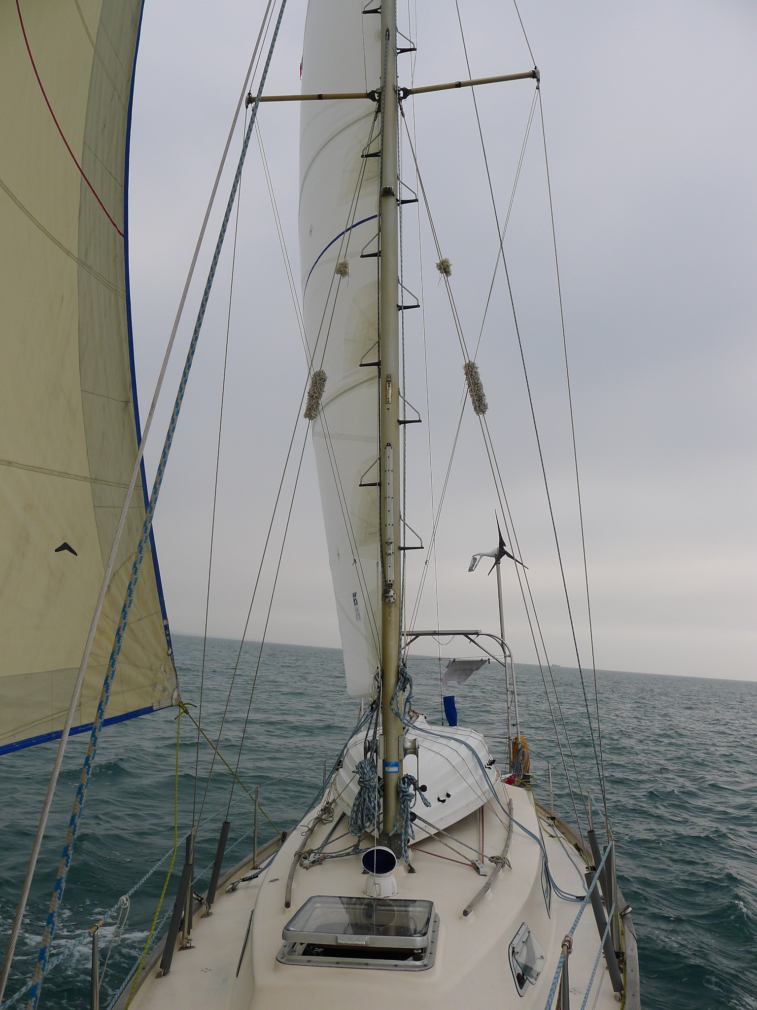Monday morning we woke up to a nice breeze and just about the time when we got everything packed, the wind died. We strolled to the breakwater where a lovely breeze slapped us on our cheeks and lifter our spirits. We ran back to the boat, too excited to walk, cast off and finally got out of the polluted harbour.